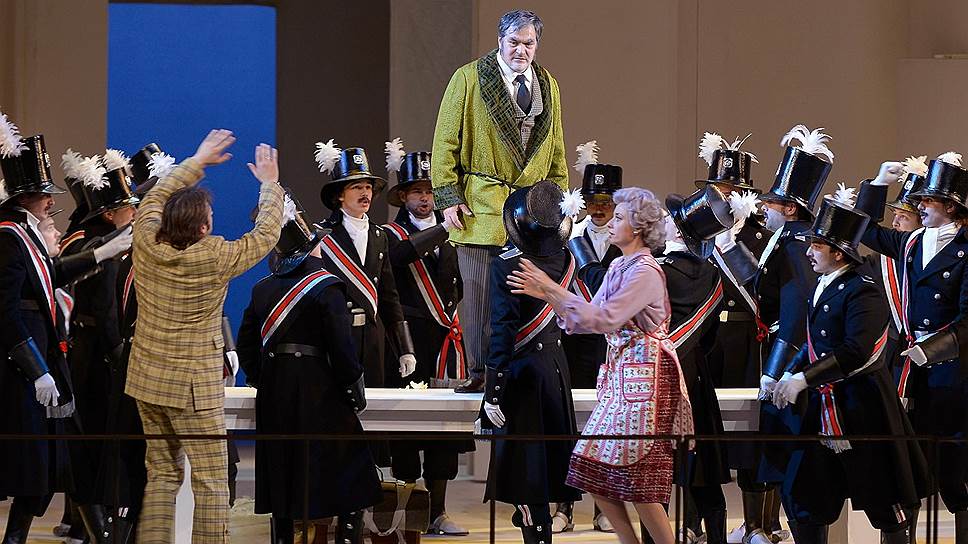 Дирижер обрывает арию Бартоло (Эдем Умеров) возгласом по-русски — мол, ты чего поешь, не те слова там