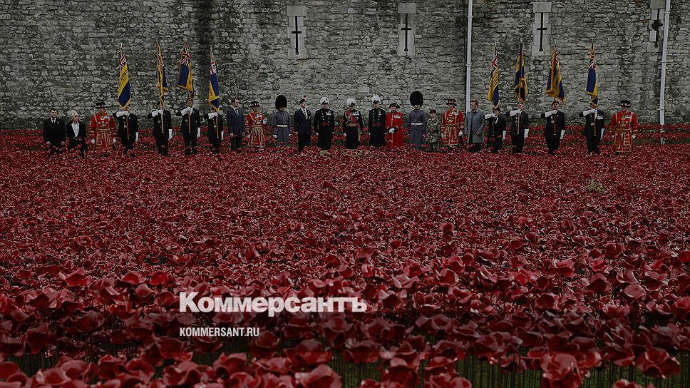 Инсталляция из маков «Кровь окрасила земли и моря в красный» в рамках церемонии празднования Дня перемирия в лондонском Тауэре