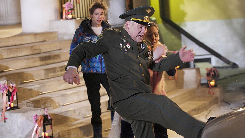 В случае с "Днем дурака" гоголевские параллели или знание текста "Ревизора" особо не понадобятся — это не перенос классики в современность, как, скажем, в недавнем "Дубровском", а вполне самостоятельное произведение, в сценарии которого режиссер Александр Баранов пытается шутить по-своему (с помощью Аркадия Казанцева и Сюзанны Муазен). Получается это не то что менее язвительно и ядовито, чем у Н. В. Гоголя, но даже как-то более вяло, чем в предыдущем совместном детище продюсера Бекмамбетова и режиссера Баранова — ремейке "Джентльменов удачи". Но туда еще можно было заманить зрителя удвоенным Сергеем Безруковым, в случае же с "Днем дурака" предъявить какие-то актерские козыри почти невозможно — единственное узнаваемое в народе лицо тут принадлежит Александру Лыкову (Казанова из "Улицы разбитых фонарей"), играющему банковского коллектора. Его жертвой становится молоденький швейцар (Алексей Веселкин-младший), убежденный, что в Москве все живут в долг, и купивший в кредит машину, чтобы в ней ночевать, потому что на съем квартиры денег ему не хватает. То есть с обещанной в названии фильма дуростью у парня все в порядке, немного хуже обстоит дело с комическим талантом актера, и задача хоть чем-то насмешить тут ложится в основном на гримеров, вынужденных выливать ему на голову ведра геля, чтобы поддерживать волосы в постоянно растрепанном состоянии. Это, наверное, должно отражать растрепанность неорганизованной натуры героя и ершистость его характера, но стоит хоть на секунду представить его гладко причесанным, и минимальный налет хлестаковщины мгновенно испарится.
