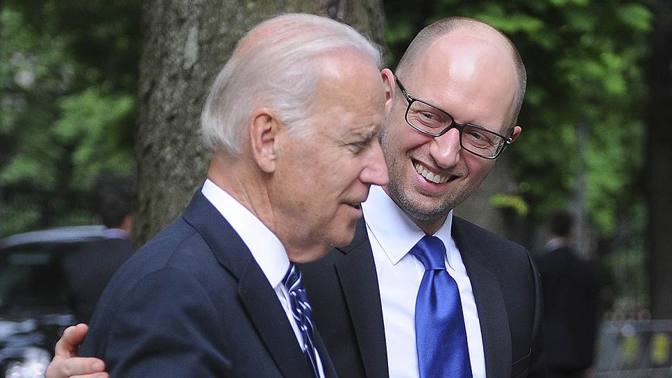 В этом году вице-президент США Джозеф Байден уже не раз посещал Киев, где ему всегда рады (справа — премьер Арсений Яценюк)