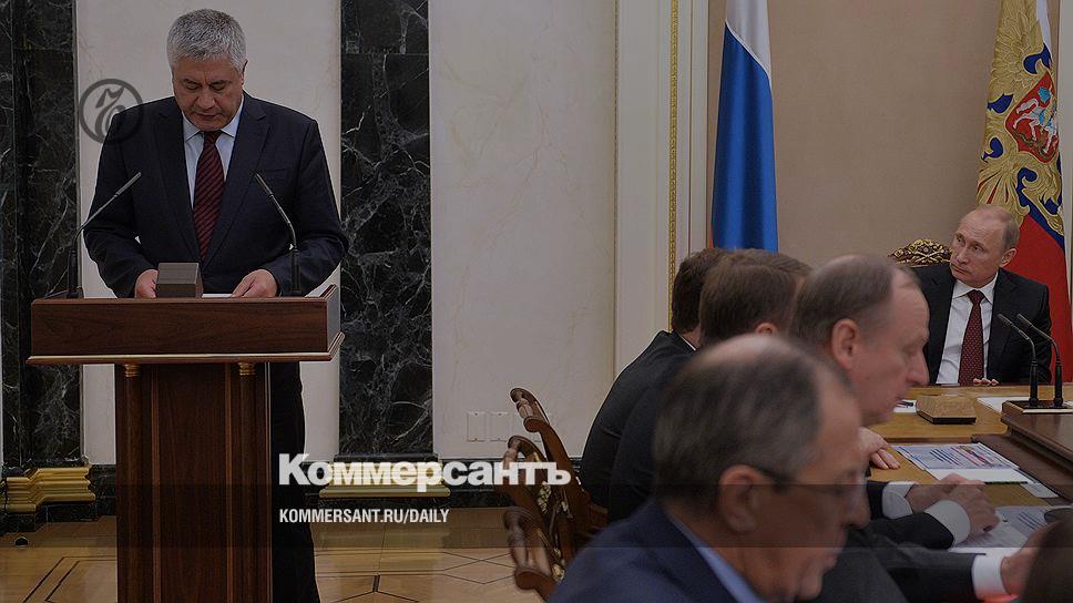 Глава МВД Владимир Колокольцев (за трибуной) рассказал членам СБ, как его ведомство будет следить «за информационным полем» страны