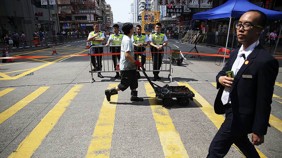 Зачистка шла в основном на улице Натан Роуд — это район Монг Кок — не на острове Гонконг, а в районе Коулун, там, где в принципе оставались такие самые завзятые, что ли, протестанты. Но дело в том, что часть людей все равно переместилась на соседние улицы. При этом полиция четко дала понять, что она не позволит перекрыть движение на улицах и сделает все для того, чтобы навести порядок. Кстати, в среду уже 60-й день протеста, — достаточно символическая дата.