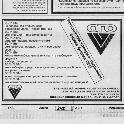 Как полагают наблюдатели, непосредственной причиной, побудившей главу РТСБ обратиться к Яковлеву, является то, что в последнее время ЦТ не раз отказывалось рекламировать биржу. Более того, по мнению Борового, оно вообще не пропагандирует опыт лучших российских предпринимателей и не готовит страну к рынку.