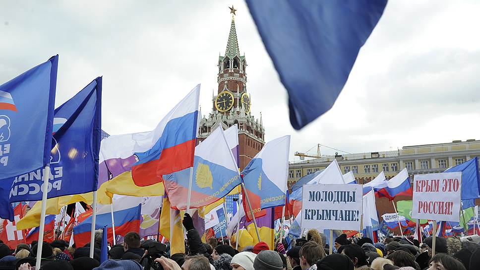 Но принципиальным моментом стала аргументация присоединения Крыма, изложенная во внеочередном послании президента 18 марта. Основным мотивом стала не национальная безопасность (судьба Черноморского флота, расширение НАТО), а тема "русского мира" и защиты соотечественников там, где они в этом нуждаются. Делая упор на этом аргументе, Владимир Путин, по существу, предопределил дальнейшее развитие событий — реакцию российского общества (всплеск патриотического энтузиазма), соотечественников на востоке Украины (ожидание крымского сценария) и внешнего мира (страх националистически окрашенной экспансии).