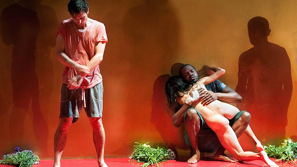 Если переводить на русский не сюжет, а суть ее спектаклей, стоит вспомнить Иосифа Бродского, сказавшего о стихах Марины Цветаевой: "Голос колоссального неблагополучия". А еще можно вспомнить Чехова, предлагавшего вешать тревожный колокольчик над дверью каждого счастливого человека. Впрочем, когда смотришь "You are my Destiny", думаешь не об этом. Вспоминается старый анекдот: ну, во-первых, это красиво — на большой сцене "Одеона" Лидделл выстраивает точную копию стены Дворца дожей, подсветив, вернее, густо залив ее красным закатным светом. Выйдя на авансцену в голубой бальной юбке и косухе, она зачитывает по бумажке предысторию: приехав в Венецию, заговорив с мужчиной, преследовавшим ее на опустевшей площади Дожей ("я гадала, насильник или убийца"), она вдруг по-новому осмыслила миф о Лукреции и Тарквинии — сюжет знаменитой картины венецианца Тициана. Тут в одном углу сцены появляется ее двойник (Лола Хименес), в другом — мужская фигура. А с галереи Дворца дожей украинский хор (Анатолий Ландар, Олексей Евдокимов, Михайло Литвиненко) затягивает протяжную песню.