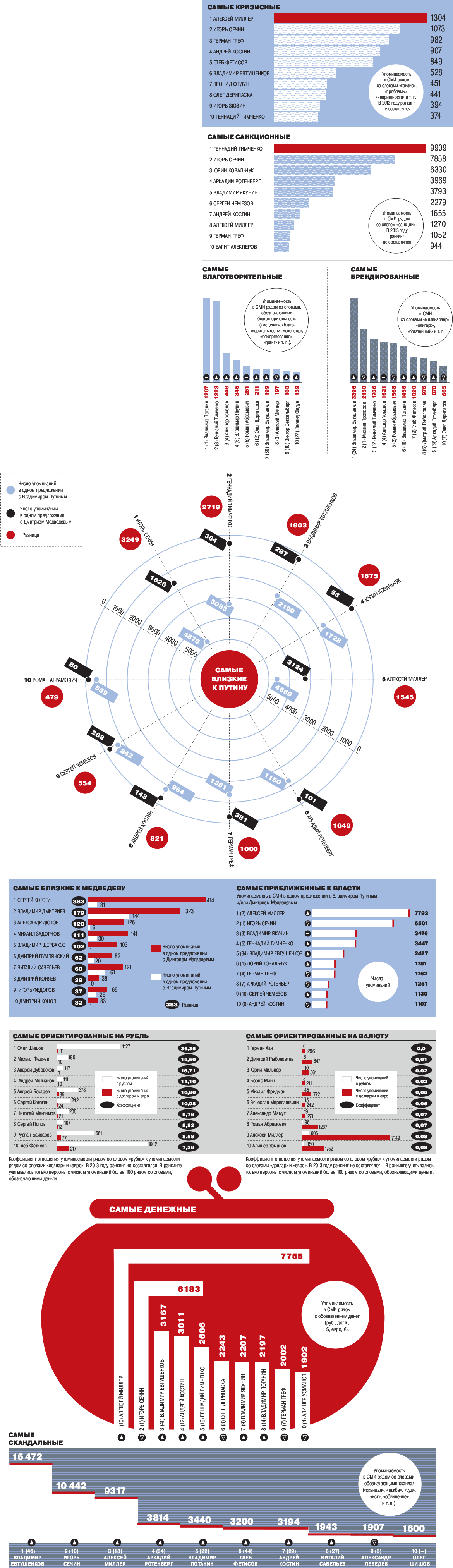 На медиаприсутствие российских бизнесменов и менеджеров в 2014 году наибольшее влияние оказали не деловые успехи или неудачи, а кризис на Украине и западные санкции.