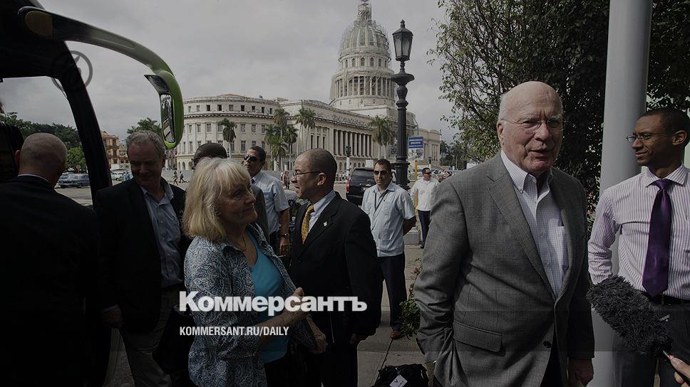 Делегация американских конгрессменов вчера нанесла официальный визит на Кубу — первый после разрыва между двумя странами в 1961 году. Группа во главе с сенатором Патриком Лейхи встретилась с членами правительства Кубы, а также с представителями гражданского общества. "Все мы поддерживаем решение президента США изменить приоритеты в нашей политике по отношению к этой стране",— заявил в Гаване Патрик Лейхи, добавив, что восстановление политического диалога будет сопровождаться ростом инвестиций и торговли. Визит делегации Конгресса в Гавану должен подготовить намеченную на 22 января поездку еще одной американской делегации — во главе с помощником госсекретаря Робертом Джейкобсоном, который обсудит с властями Кубы восстановление работы посольств в обеих странах, а также возможные меры борьбы с нелегальной миграцией и теневым бизнесом, связанным с ней. Кроме того, на ближайшее время запланирован визит на Кубу торговой делегации во главе с губернатором штата Нью-Йорк Эндрю Куомо.