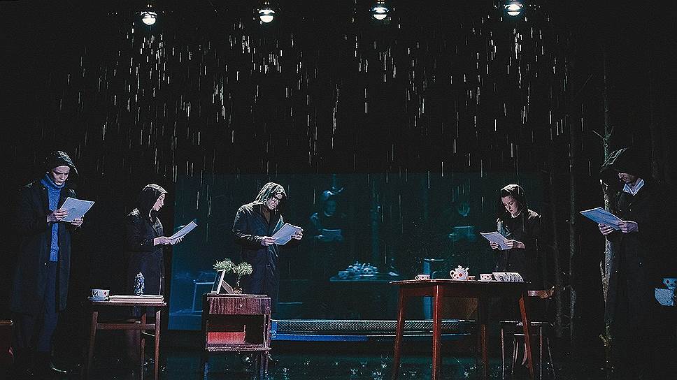 Водораздел Семен Александровский проводит по известному "письму сорока шести" — заявлению новосибирских ученых по делу активистов самиздата, привлеченных в 1968-м году к уголовной ответственности. Проводит действительно с помощью воды: на сцене идет настоящий дождь, и все время, пока разыгрывается драматическая история с выявлением и наказанием авторов письма, их травлей и принуждением к покаянию, персонажи спектакля проводят под зонтиками — сжавшиеся, потускневшие, озябшие, словно провожающие в последний путь свои несбывшиеся мечты. Вообще, "Элементарные частицы" звучно перекликаются со спектаклем Дмитрия Волкострелова "Новый мир. 1968 год", в котором тоже шла речь о разбитых надеждах и были использованы материалы суда над участниками демонстрации против ввода советских войск в Чехословакию. Переклички неслучайны — оба, Волкострелов и Александровский, были ключевыми участниками "группы юбилейного года" на Таганке. Опыт создания документальных спектаклей в рамках того проекта наверняка пригодился Александровскому и в Новосибирске.