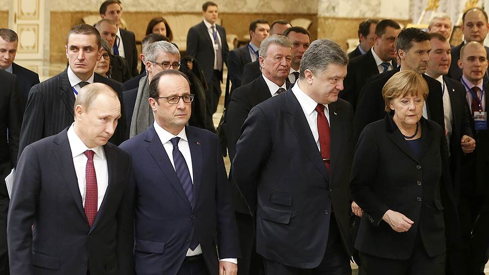 Во встрече "нормандской четверки" приняли участие Владимир Путин, Ангела Меркель, Франсуа Олланд и Петр Порошенко. По итогам саммита каждый из лидеров сделал заявление для прессы, после чего они покинули Дворец независимости. Сторонам удалось договориться о прекращении огня в Донбассе с 15 февраля, а также об отводе тяжелого вооружения.