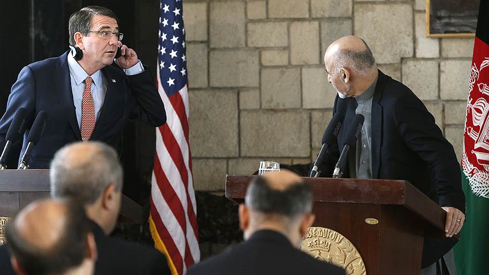 Глава Пентагона Эштон Картер (слева) услышал аргументы президента Афганистана Ашрафа Гани Ахмадзая