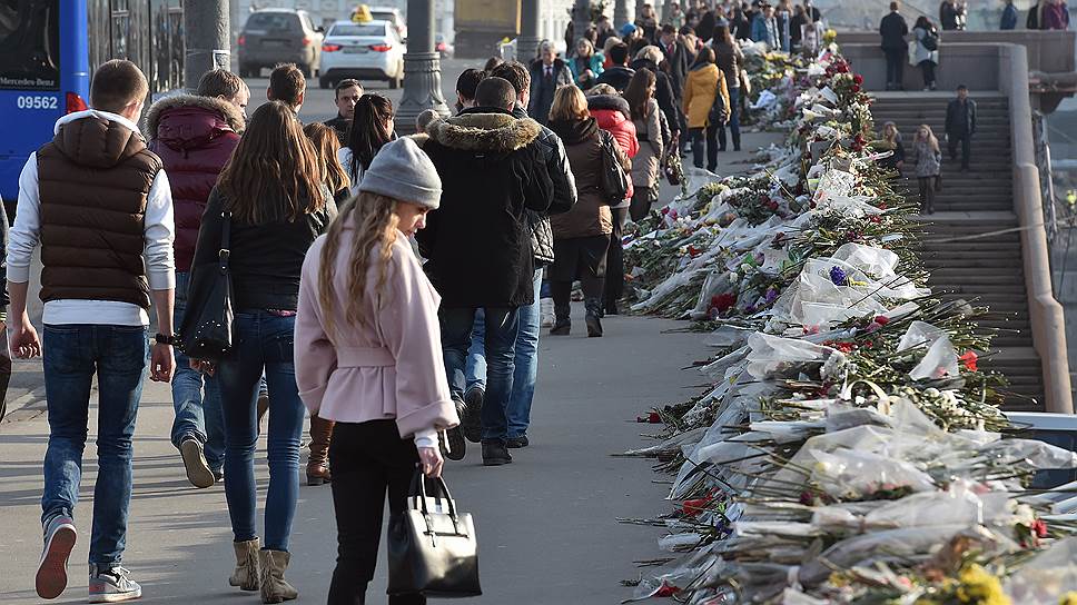 В социальных сетях уже появились призывы в 20:00 собраться на Большом Москворецком мосту, чтобы принести на место убийства Бориса Немцова новые цветы и убрать последствия действий активистов SERB.