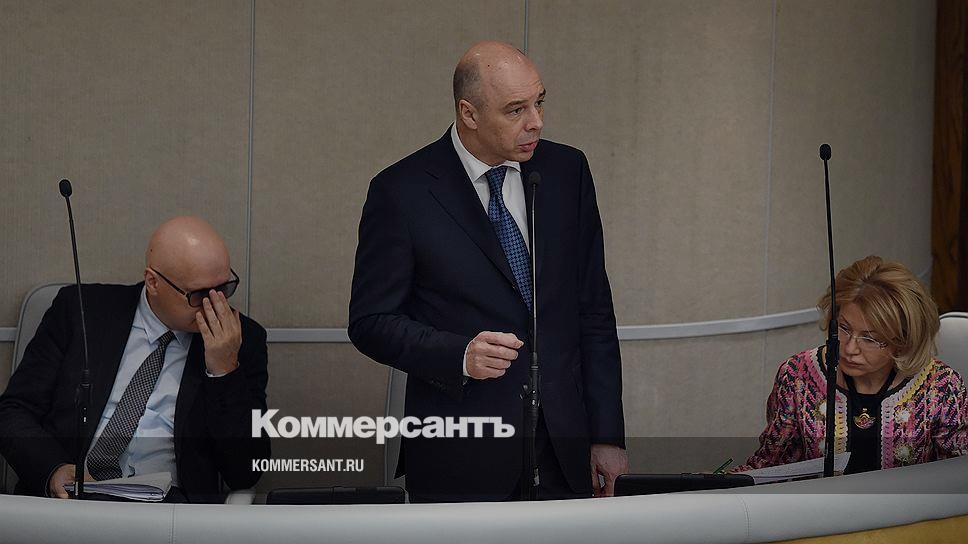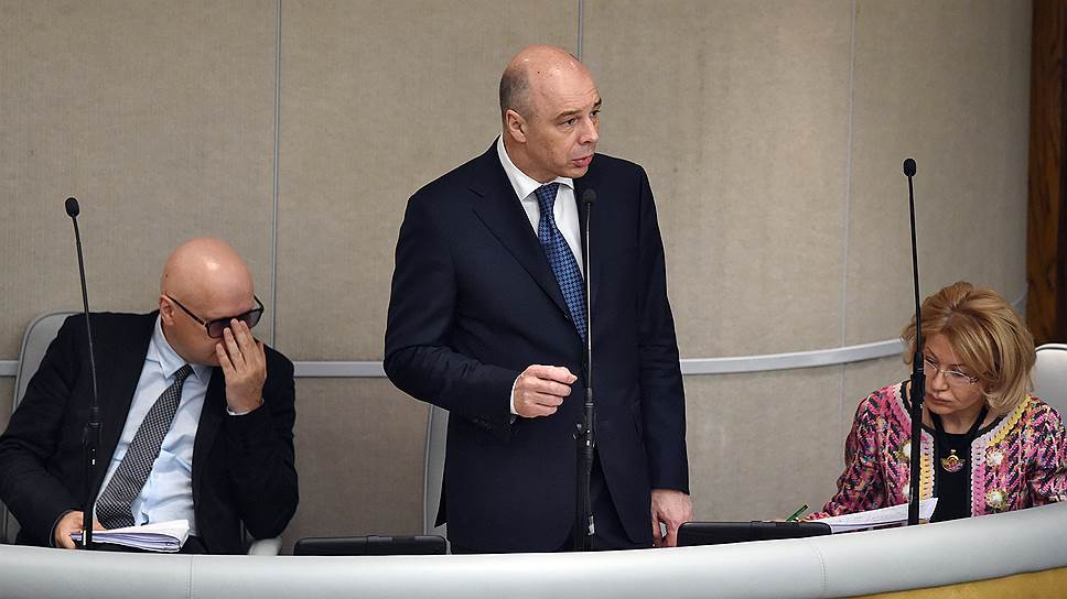 Министр финансов Антон Силуанов (в центре) и его заместитель Алексей Лавров (слева) во время пленарного заседания Госдумы.
