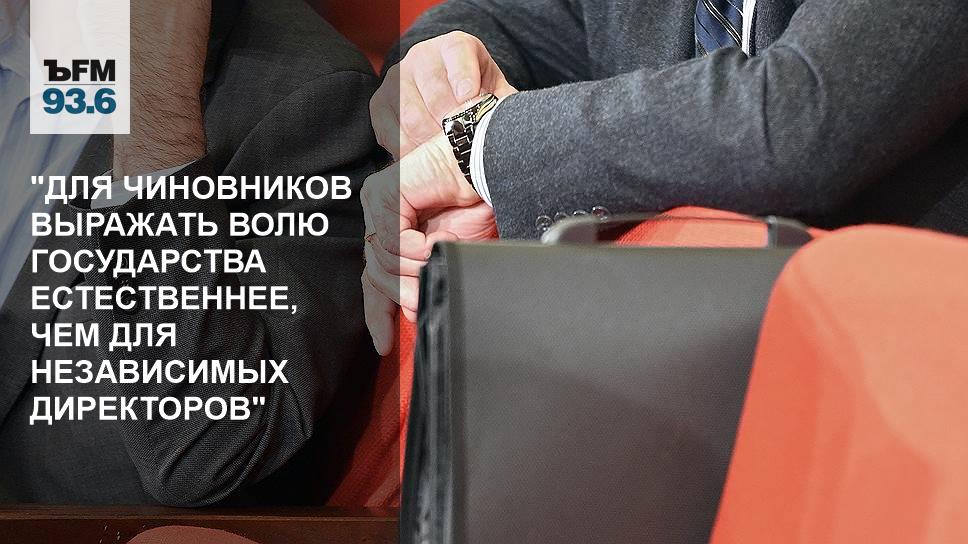 Дмитрий Орлов: "Мне просто кажется, что та идея, которая клалась в основу того, чтобы убрать чиновников и назначить представителей государства, которые к чиновничеству отношения не имеют, была хороша по задумке, но на практике оказалась не слишком благоприятной по результатам. Чиновники, конечно, эффективнее председательствуют, проще связь между собственником, государством в данном случае, и волей чиновника с той директивой, которую он исполняет. Поэтому я полагаю, что просто решили исключить посредническое звено в виде независимых директоров, которые при этом выражали волю государства. Чиновникам делать это, конечно, естественнее и логичнее, а коррупционная угроза здесь не слишком велика, да и независимые директора, если они в интересах государства голосуют, на себе испытывают действие точно такой же коррупционной угрозы".