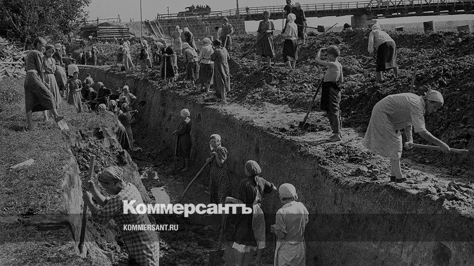 Сентябрь 1941. Мирные жители помогают Красной Армии строить укрепления против немецких танков