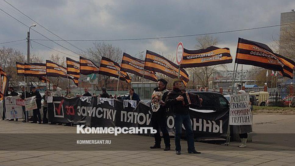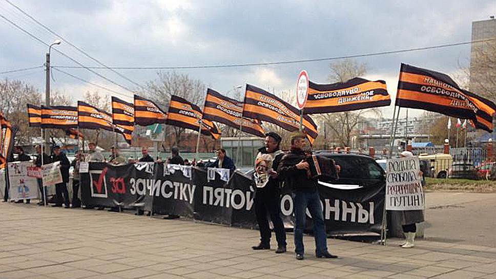 Члены национально-освободительного движения (НОД) провели акцию у здания холдинга РБК на Коломенской улице. В 14:00 около 15 членов движения собрались на митинг с плакатами, критикующими работу СМИ: «За зачистку "пятой колонны"», «Пора чистить СМИ». В течение часа митингующие играли на баяне, пели частушки. Участники акции скандировали: «РБК — агент США».