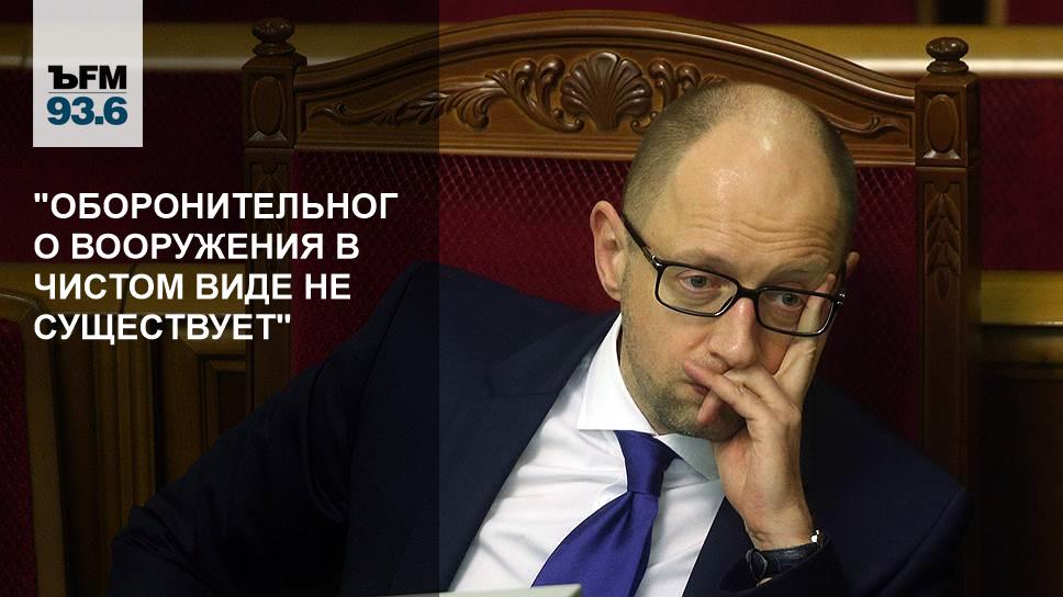 Украине нужно оборонительное оружие для защиты европейских границ, заявил премьер-министр страны Арсений Яценюк. Поставки любого вида вооружений могут привести к эскалации конфликта на юго-востоке, поэтому вряд ли Запад пойдет на такие меры, считают собеседники "Коммерсантъ FM".