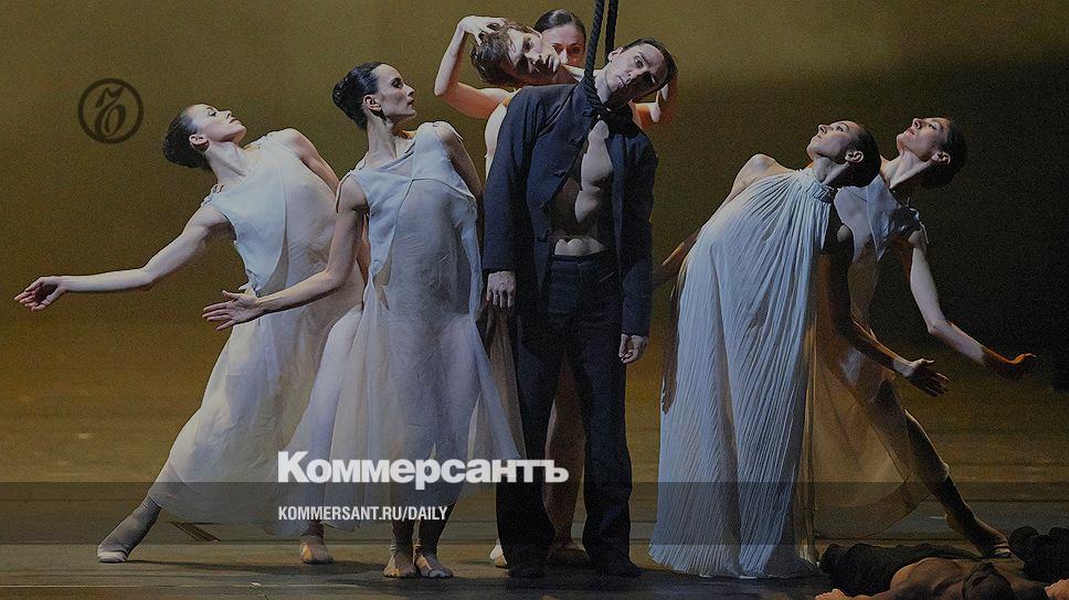 Но главным открытием венских гастролей стало имя Наталии Хоречны — уроженки Братиславы, солистки знаменитого NDT, попробовавшей себя в качестве хореографа всего три года назад. Худрук Легри, мигом оценивший эти попытки, первым заказал ей целый спектакль (тот самый "Обратный отсчет" на сборную музыку, который показали в Петербурге), и теперь молодое дарование идет нарасхват. Западные критики называют Наталию Хоречну смесью Григоровича с Ноймайером. На самом деле она не похожа ни на кого — просто, как и классики, любит рассказывать танцем разные истории, что среди современных хореографов величайшая редкость. "Обратный отсчет" начинается самоубийством: герой, доказав в коротком экспрессивном монологе, что дошел до последней грани отчаяния, накидывает на шею спустившуюся с колосников петлю, и тут же его телом завладевают три дюжих молодца с обнаженными торсами и выкрашенными черным впадинами глаз — "ангелы смерти". Поначалу кажется, что все это уже где-то было. Девы в белых поэтичных хитонах и юноши в светлых штанах танцуют лирико-патетическое адажио, которое отличается от подобных разве что насыщенностью текста — у каждой из пяти пар своя хореография. Два тела, с головой накрытых белыми полотнищами, края которых исчезают за кулисами, красиво и мучительно стремятся друг к другу — чистая цитата из Бориса Эйфмана. За телом повешенного, продолжающего стоять с петлей на шее, обнаруживается его обнаженная мужская "душа" с пронзительно-тоскливым монологом.