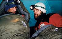 | Отец и сын — Дмитрий и Матвей Шпаро. Матвей говорит, что мокрые носки и варежки лучше класть с собой в спальник и сушить на теле |