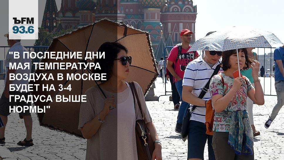 — Для последних дней мая, конечно же, температура будет достаточно высокая. Пусть она и не достигнет рекордно максимальных значений, тем не менее, ее фон будет примерно на 3-4 градуса выше, чем обычно бывает в эти дни мая. Погоду будет формировать очаг повышенного атмосферного давления, в этой зоне преобладают нисходящие потоки воздуха, и особенно в предстоящую среду мы почувствуем это очень сильно — ветер будет очень слабый, температура высокая. Если говорить о цифрах, то среда и четверг в столичном регионе пройдут при дневных температурах в пределах 27-28 градусов, чуть прохладнее будет в пятницу — около 23-25 градусов, а вот выходные вновь будут жаркими — в пределах 27-29 градусов. Начиная с вечера среды, в отдельных районах города и области возрастет вероятность кратковременных локальных грозовых дождей, но существенного влияния на погоду они оказывать не будут.
