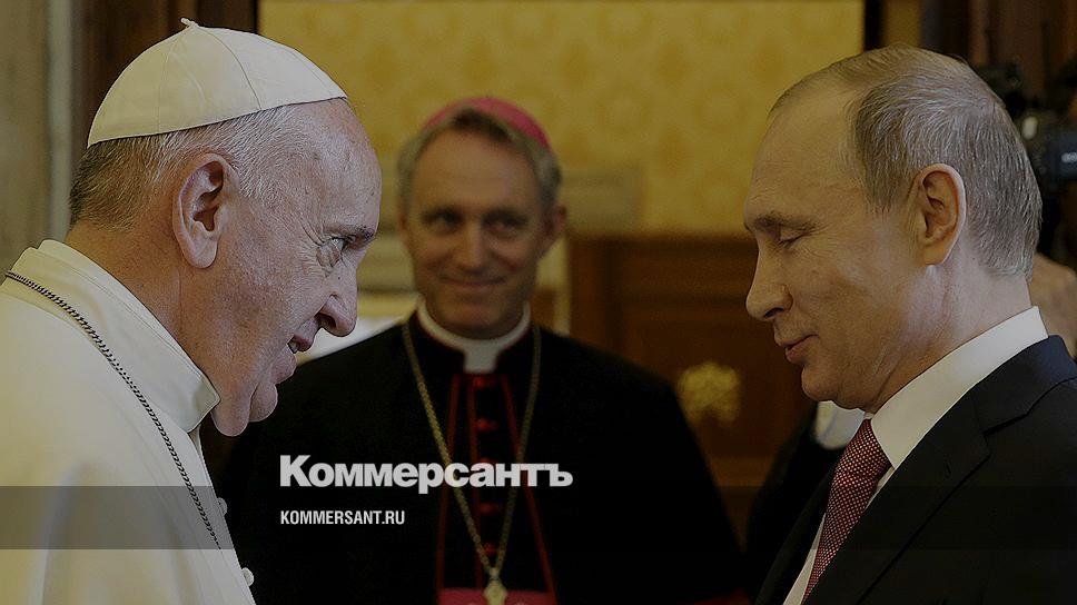 Президент России Владимир Путин (справа) и папа римский Франциск (слева)