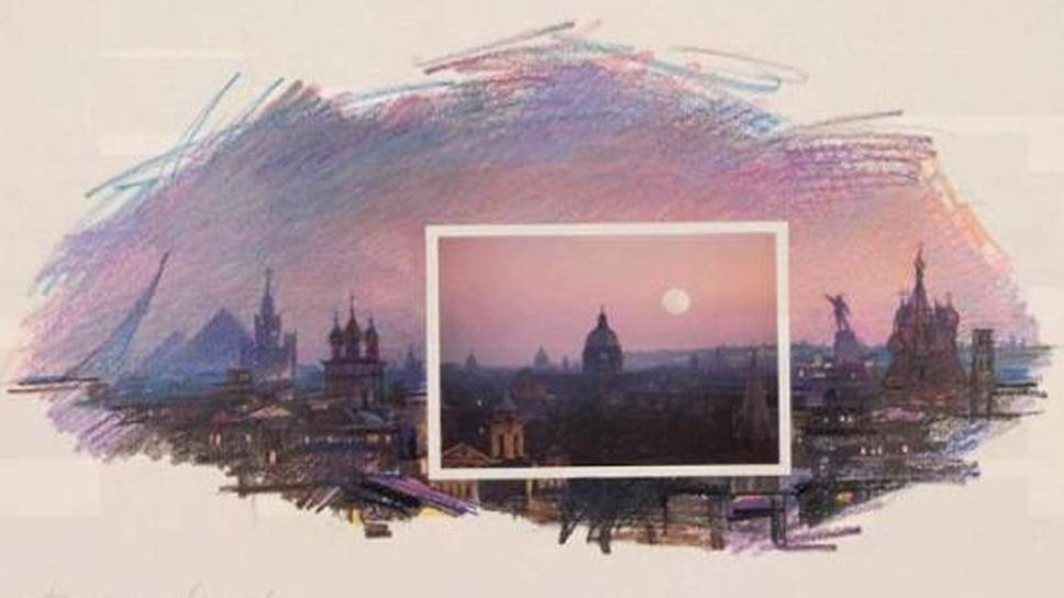 Выставка посвящена городу, который, прямо как кино во французском альманахе, у каждого свой. Лучше всего такой подход описывает графика Ивана Чуйкова — в его московские виды еле заметно вторгаются открытки из совсем других мест, демонстрируя, что даже в закатном пейзаже каждый видит лишь то, что хочет.