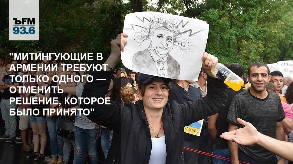 — То есть повторения того, что в самом начале было, когда все-таки полиция попыталась разогнать протестующих, уже не должно случиться, по крайней мере, руководство полиции заявило о том, что приносит свои искренние извинения всем, кто пострадал во время этого разгона, и журналистам в том числе, у которых отбирали и разбивали аппаратуру. Люди, которые сейчас находятся в Ереване, требуют, чтобы было отменено решение о повышении тарифов. Они от кого этого решения ждут?