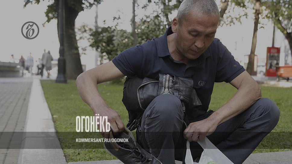 Моется Женя обычно в больших торговых центрах. Заходит в комнату для пеленания детей — и вперед. Так все бомжи делают: раскладывают свои вещи на пеленальном столике, достают бритву, шампунь, лосьон. "Как в анекдоте,— хихикает блогер, намыливая под краном голову.— "Как вы часто моетесь? — Раз в год. Остальное время чешусь"". Но Якут старается следить за собой — чистые волосы, белая футболка, белые кеды, иначе его не будут пускать в торговые центры. А на мелкие расходы и тут можно денег добыть: Женя собирает брошенные тележки возле "Ашана", если их вернуть на место, то можно получить за каждую 10 рублей.