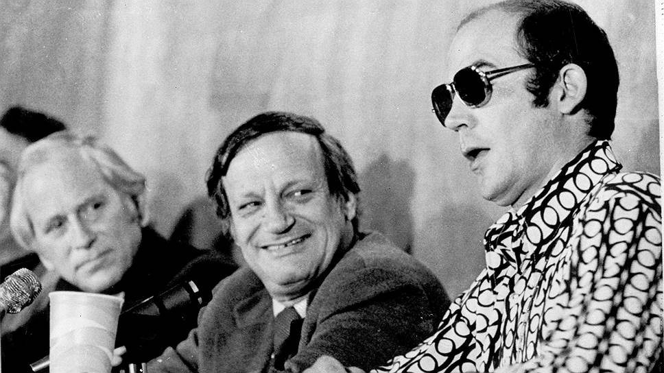 Хантер Томпсон (справа) во время выступления в Йельском университете, посвященного прошедшим президентским выборам, 7 декабря 1972 года