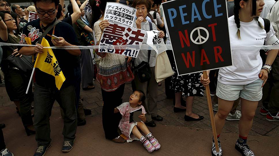 Японские активисты передали в парламент страны более 1,65 млн подписей противников пакета законов, разрешающих правительству применять военную силу за рубежом. В случае одобрения инициативы, которая сейчас обсуждается в парламенте, Япония впервые после поражения во Второй мировой войне получит право участвовать в военных операциях за пределами своей территории. Вместе с тем более половины жителей страны не считают, что право на применение силы за рубежом отвечает интересам национальной безопасности.