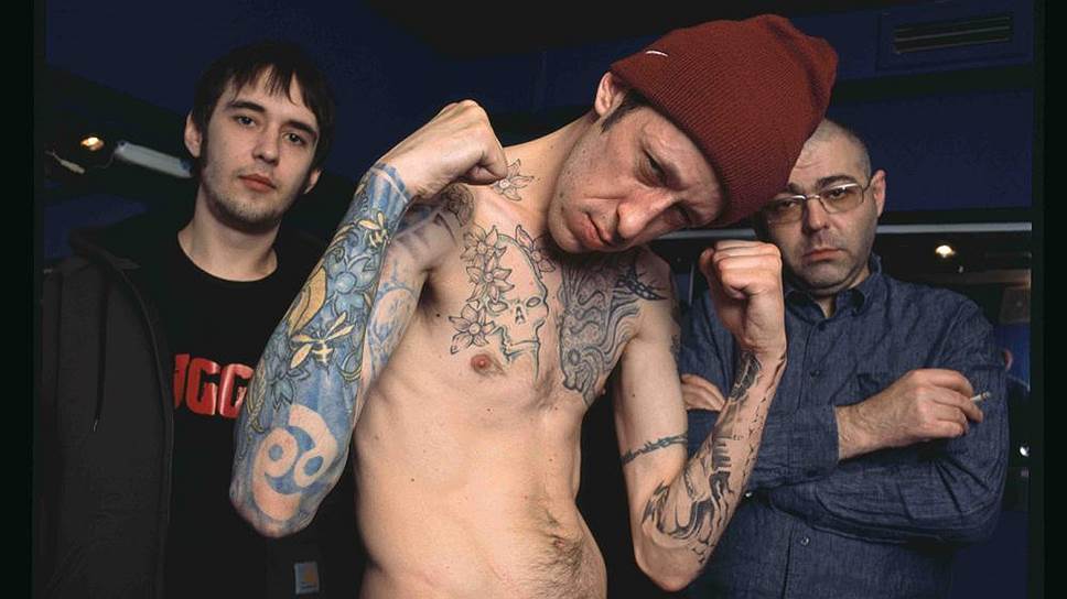 Участники группы «Кровосток» Антон «Шило» Черняк (в центре) и Дмитрий «Доктор Фельдман» Файн (справа)