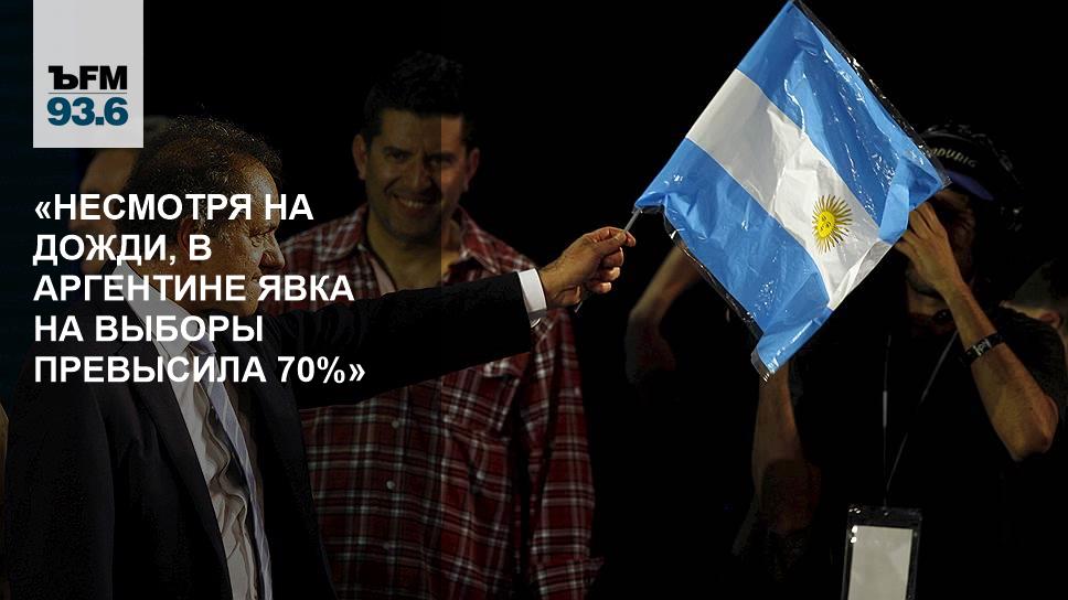 Выборы в Аргентине обязательны, в случае неявки придется заплатить штраф — 50 песо, по официальному курсу это $5,5. Кстати, 25 октября, когда страна будет выбирать нового президента, штраф за неявку увеличится до 100 песо. Что касается остальных кандидатов, фаворитов, первые результаты выборов появились в 10.30 вечера. И к этому времени обработаны данные 10% избирательных участков. Лидирует Даниэль Сциоли, губернатор провинции Буэнос-Айрес, кандидат от партии «Фронт за победу», он к этой минуте набирает почти 37%. На втором месте Маурисио Макри, сейчас он действующий мэр Буэнос-Айреса, бывший президент футбольного клуба Boca Juniors. У него почти 25%. На третьем месте мэр города Тигре Серхио Масса, у него 12%. Напомню, что все они будут выдвигать свои кандидатуры на основных выборах в Аргентине, которые состоятся 25 октября.