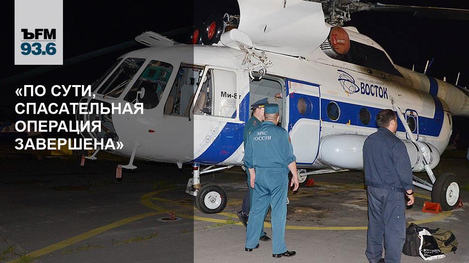 «Последние данные — пятеро погибших подняты из упавшего вертолета. МЧС не говорит прямо о том, что спасательная операция завершена, но, по сути, все люди найдены, дальше остаются только следственные действия. Дело передано хабаровским следователям, поскольку туда доставлены выжившие. Там будут продолжаться опросы пассажиров. Также сейчас анализируются изъятые документы из офисов авиакомпании "Восток", которой принадлежал вертолет Ми-8», — рассказала Сычева «Коммерсантъ FM».