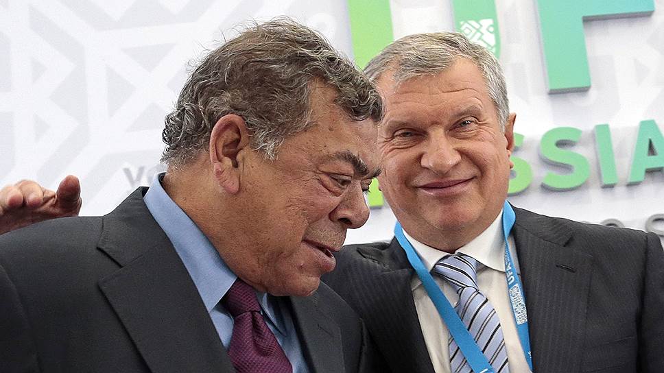 Президент НК "Роснефть" Игорь Сечин (справа) и председатель совета директоров Essar Global Шаши Руйя заключили контракт на поставку в Индию в течение десяти лет в общей сложности 100 млн тонн российской нефти