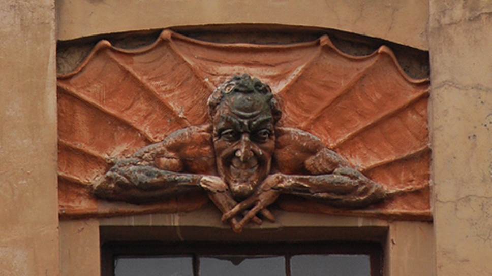 — Это вообще знаменитый дом. Дом, построенный в 1910 примерно году архитектором Лишневским. Причем это его собственный доходный дом, он для себя строил. И именно в том стиле, в котором работал Лишневский, это был, конечно, модерн, но для него было актуально и важно изображение разных интересных озорных фигурок на фасадах домов. И здесь то же самое — имелся этот барельеф демона, которого все называли Мефистофелем. Так и дом назывался – «Дом с Мефистофелем». Он был очень известной достопримечательностью Петербурга, Петроградской стороны, находился во всех практически путеводителях. К нему водили экскурсии, он считался добрым покровителем Петроградской стороны. Кому он помешал, можно только догадываться.