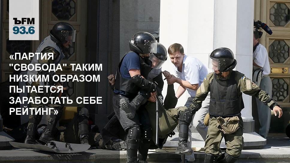 — Провокация заключается в том, что драка явно была заранее подготовлена, и это видно. Она спровоцирована, чтобы праворадикальная молодежь поддержала «Свободу» на выборах в парламент, на выборах в областные, городские советы, которые будут в октябре. То есть «Свобода» очень низким образом на сегодняшний день пытается заработать себе какой-то рейтинг и поддержку, чтобы занять свое место на выборах.