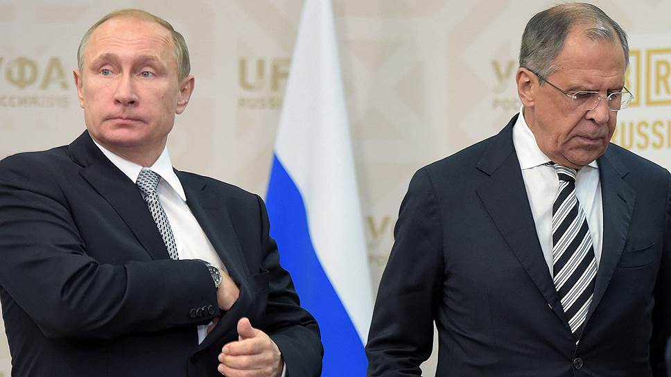 Президент России Владимир Путин (слева) и министр иностранных дел России Сергей Лавров