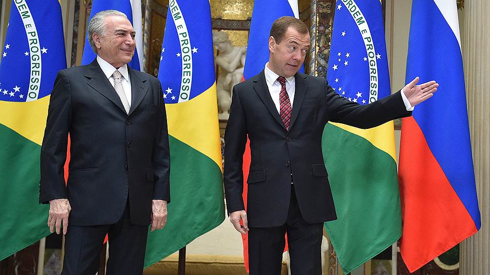 При этом в условиях экономической нестабильности Россия и Бразилия продолжают обсуждать возможности взаиморасчетов в национальных валютах — рублях и реалах. «Это точно нас подстраховало бы от скачков на рынках резервных валют, во всяком случае смягчило бы последствия такого рода скачков»,— считает Дмитрий Медведев. Мишел Темер добавил, что это непростой вопрос и обсуждать его нужно с центральными банками обеих стран. Но он подчеркнул, что взял на себя обязательства провести ряд консультаций, чтобы решить, что можно сделать для повышения эффективности двустороннего экономического обмена.