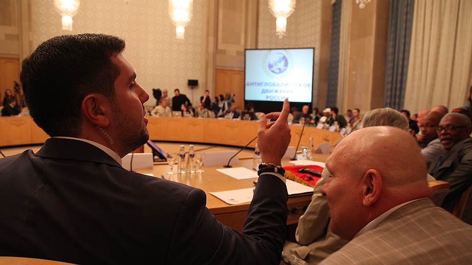 Представитель партии «Родина» Федор Бирюков объяснил важность проведения подобного форума именно в Москве. «Мы (Россия.— “Ъ”) пытаемся заключить в дружеские объятия весь мир,— заявил он.— И справа, и слева (имелись в виду инициативы Москвы по развитию связей с крайне правыми и крайне левыми политическими движениями.— “Ъ”)». Меры эти, по словам господина Бирюкова, принимаются с целью «сформировать всемирный фронт сопротивления вашингтонским упырям».