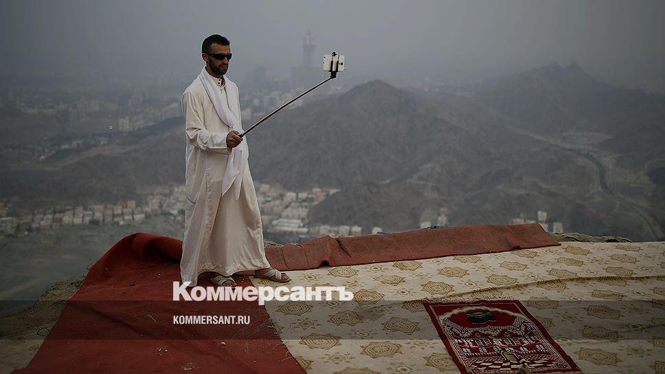 Мекка, Саудовская Аравия. Паломник делает селфи на горе возле священного города перед началом хаджа