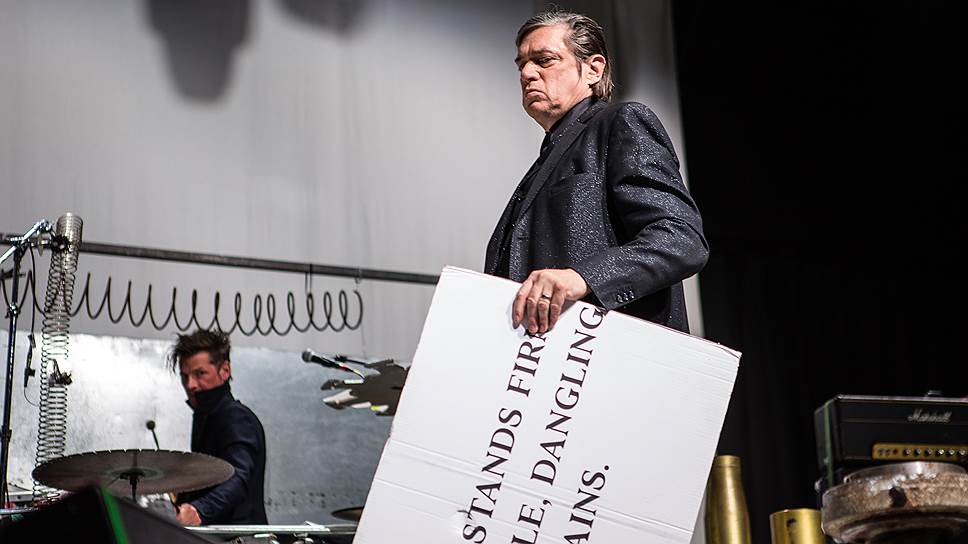 Бликса Баргельд в костюме-тройке напоминал не столько музыканта, сколько профессора индустриальной консерватории или запевшего лектора
