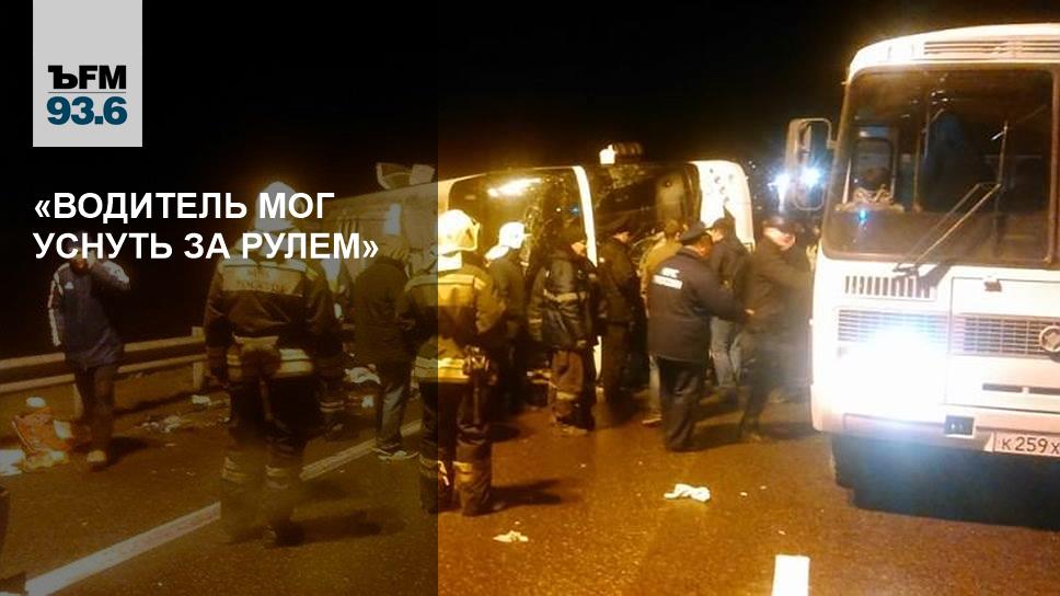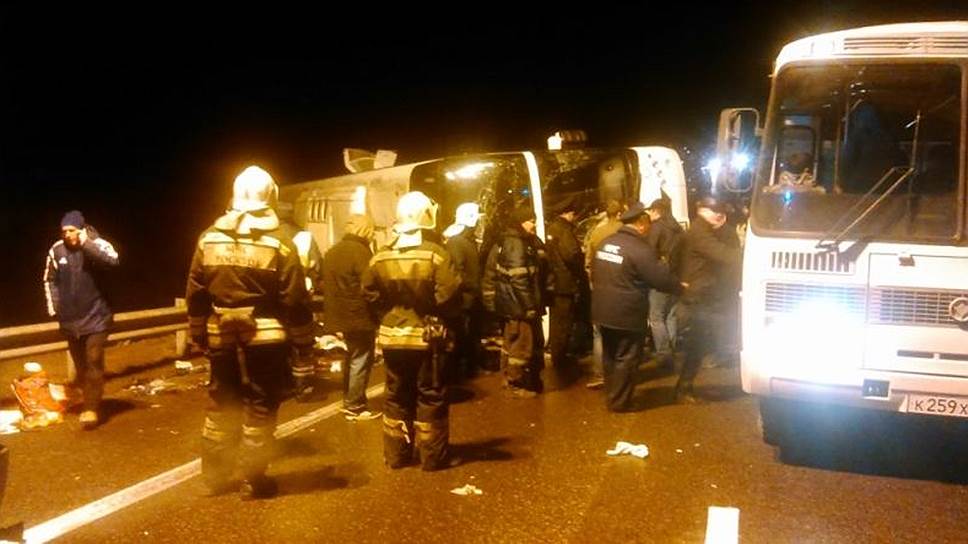 «Сегодня около двух часов ночи на 221 км дороги М4 "Дон" произошло дорожно-транспортное происшествие с участием автобуса Higer, двигавшегося в южном направлении по маршруту Москва-Ереван. По предварительным данным, водитель не справился с управлением и совершил опрокидывание транспортного средства. В настоящее время полицейские рассматривают версию технической неисправности, но в то же время не исключается вероятность того, что водитель мог уснуть за рулем. Сотрудники полиции в настоящий момент работают с водителем автобуса в целях установления истинных причин дорожно-транспортного происшествия», — отметил Ярцев.