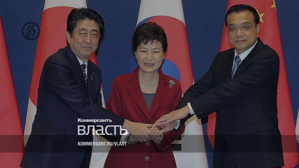 Премьер-министр Японии Синдзо Абэ, президент Южной Кореи Пак Кын Хе и премьер-министр КНР Ли Кэцян встретились - и не поругались