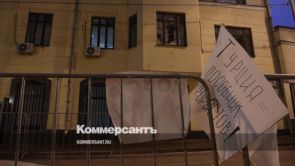 Протестующие против действий ВВС Турции, которые сбили российский самолет Су-24, закидали камнями посольство Турции в центре Москвы, сообщает «Интерфакс». Отмечается, что в здании были разбиты окна, а сотрудники опасаются передвигаться по коридорам посольства.