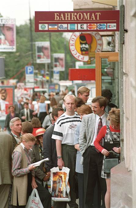 Уже 17 августа 1998 года, в день объявления дефолта, Visa запретила выдачу наличных в банкоматах по российским картам, причем вне зависимости от состояния платежеспособности банков