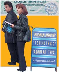 Но граждане раздраженно требовали денег. А я требовал еще и начальства, но уже в качестве журналиста. Потому что рекламную открытку мне дали, конечно, случайно, позвонили тоже, но я-то в "Миллениум" пошел уже по долгу службы, собрав информацию о методах работы компании.