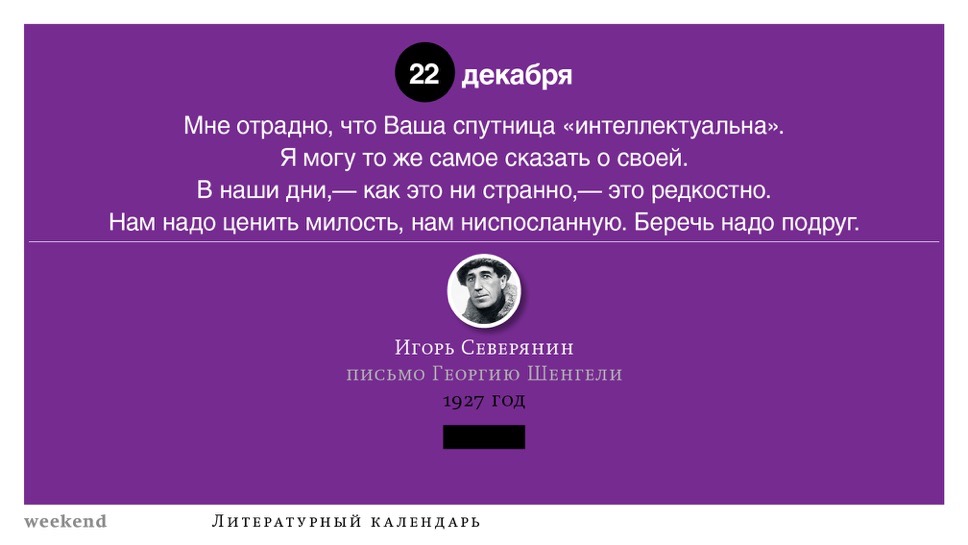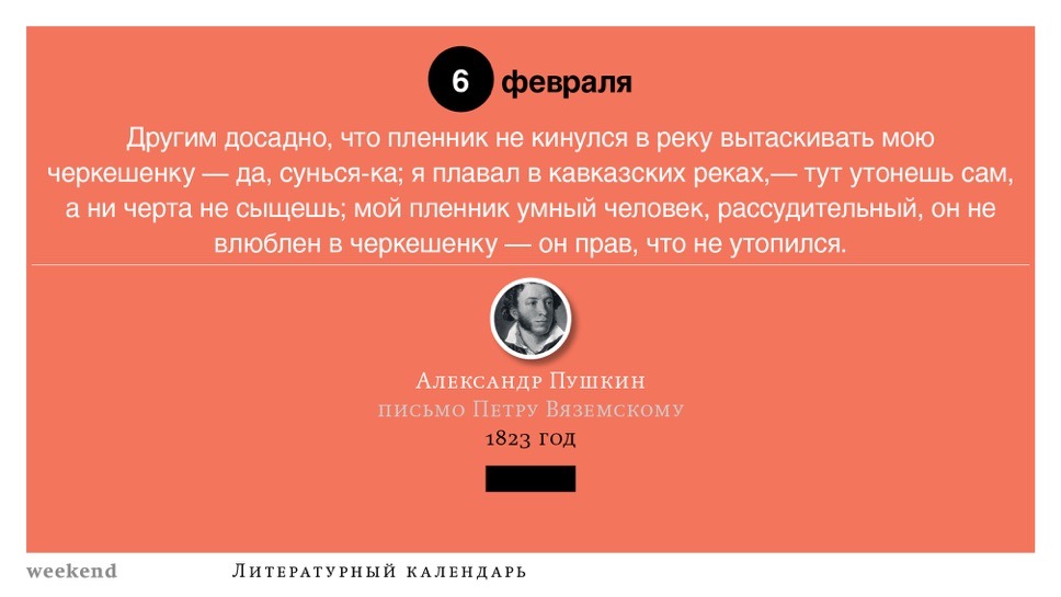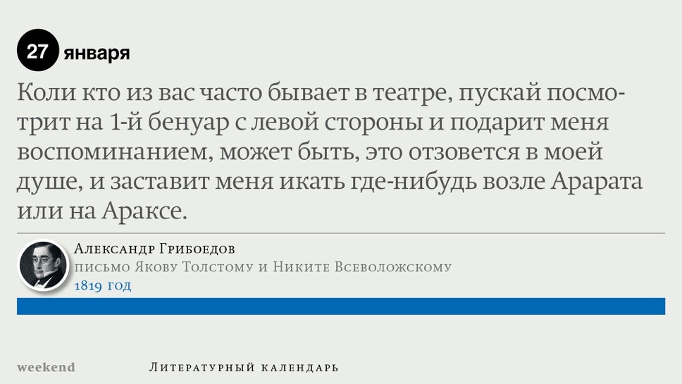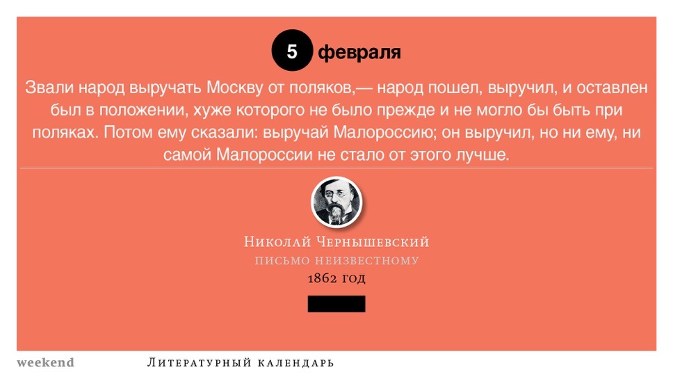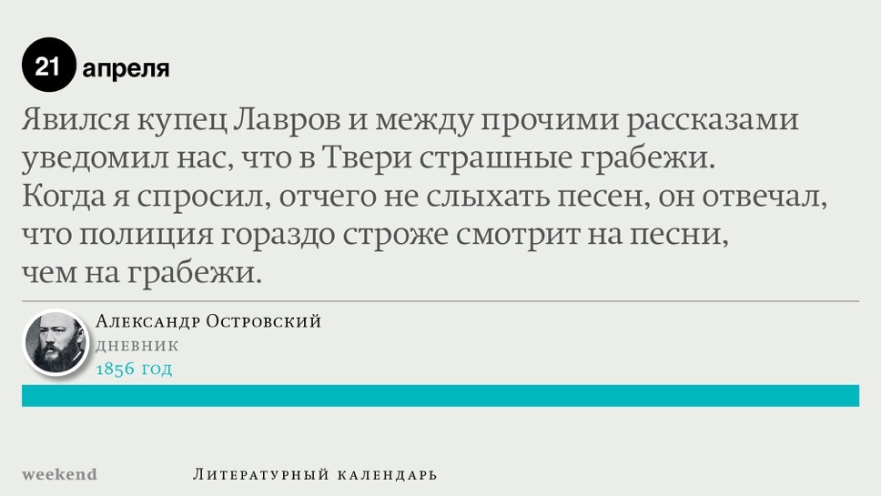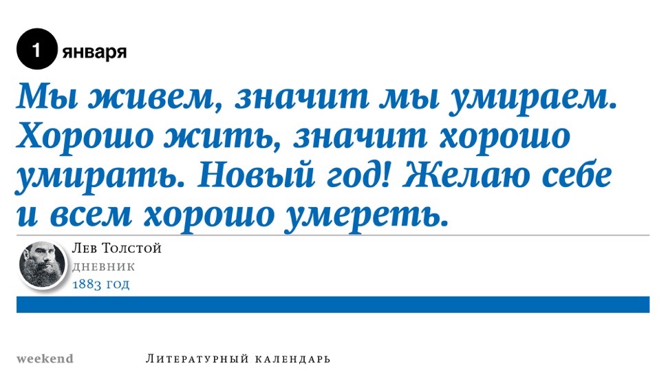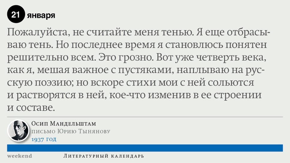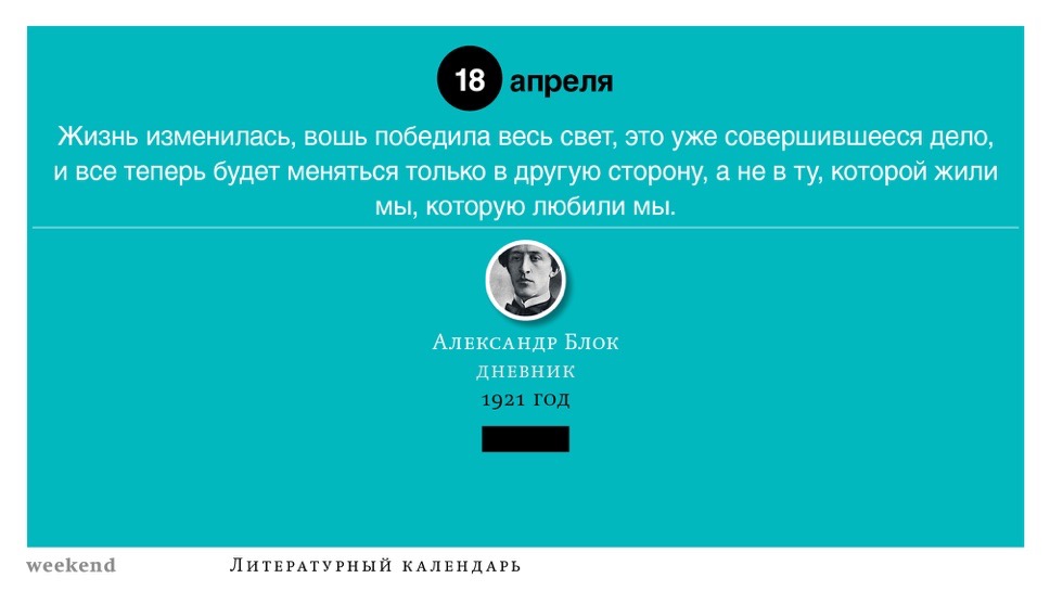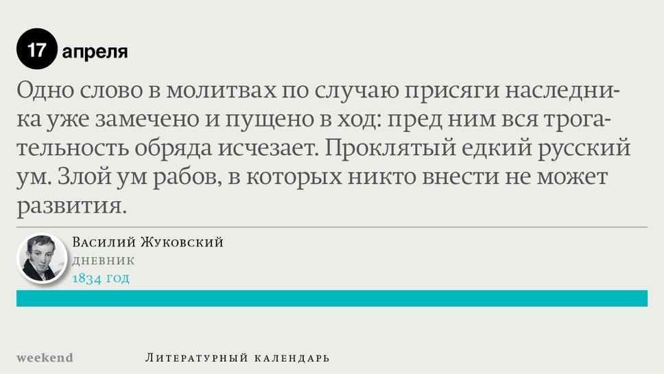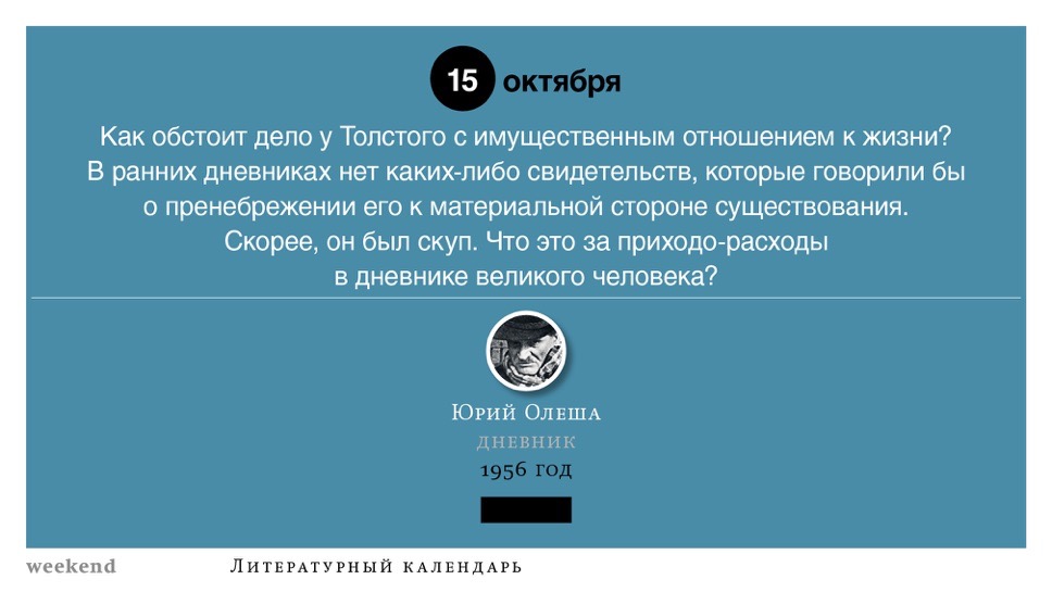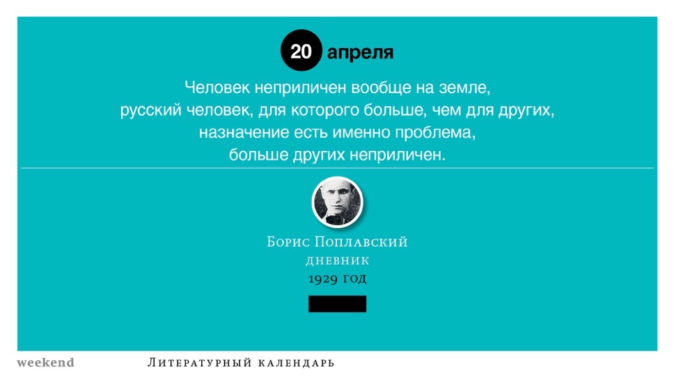 2015 год, объявленный в России годом литературы, мы отметили «Календарем литературных преследований», составленным из свидетельств репрессий в отношении русских писателей. Мы завершаем этот год календарем, составленным из их дневниковых записей и частной переписки. 190 лет назад Пушкин в письме Вяземскому, радуясь утрате записок Байрона, писал, что поэт исповедуется в стихах, а в прозе наверняка стал бы лгать, а публика стала бы жадно читать и ликовать от унижения высокого. Мы рады, что дневники и письма русских писателей сохранились. Как бы ни показались они малы в своих частных записках, они малы, как и утверждал Пушкин, не так, как мы, – иначе. О каких бы мелочах они ни говорили, они всегда находят точные слова.