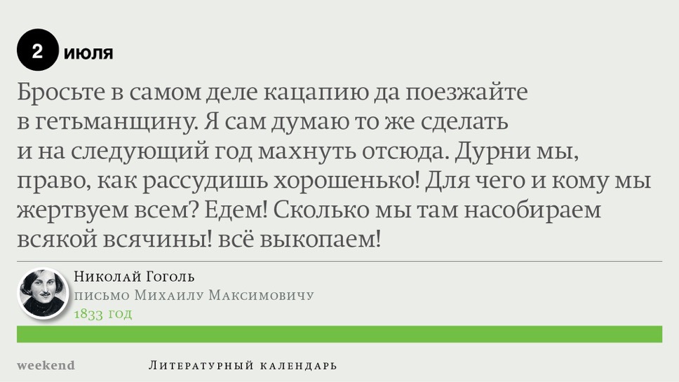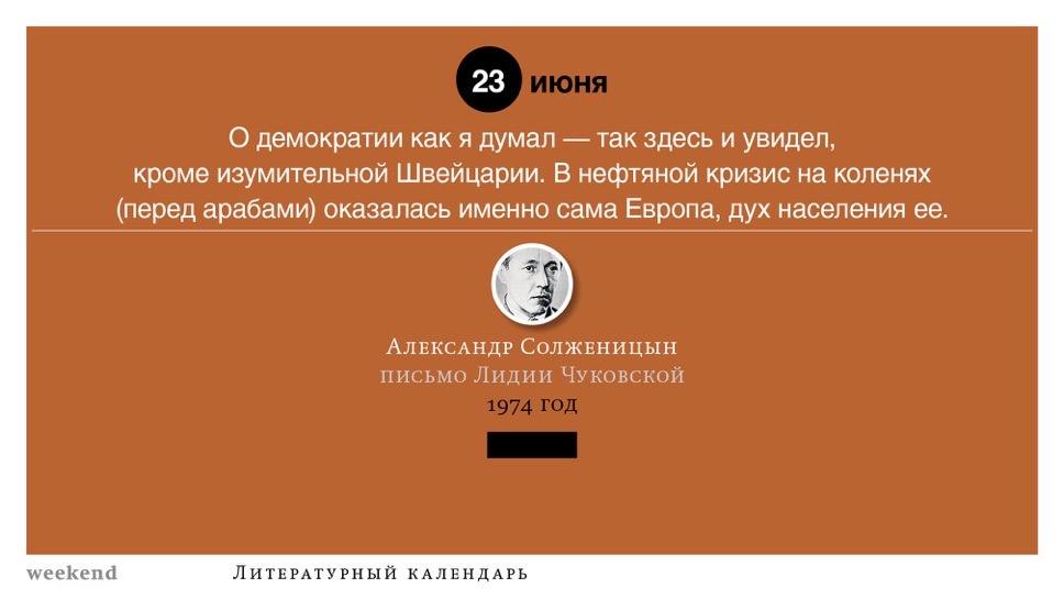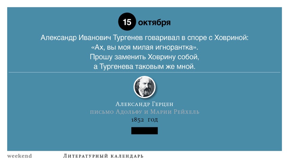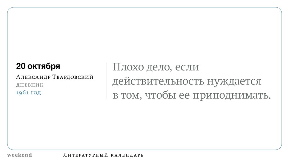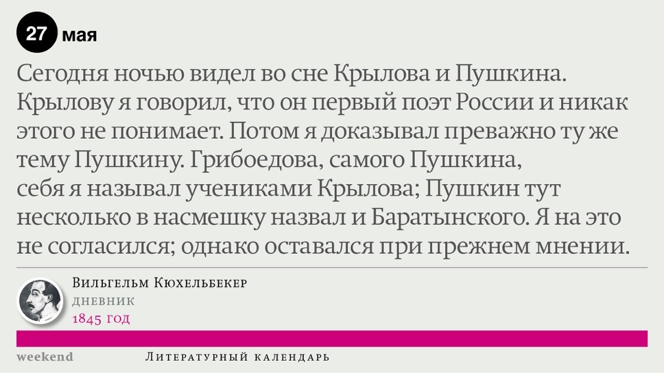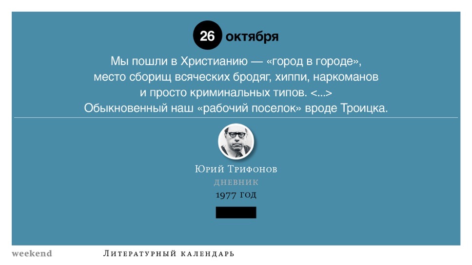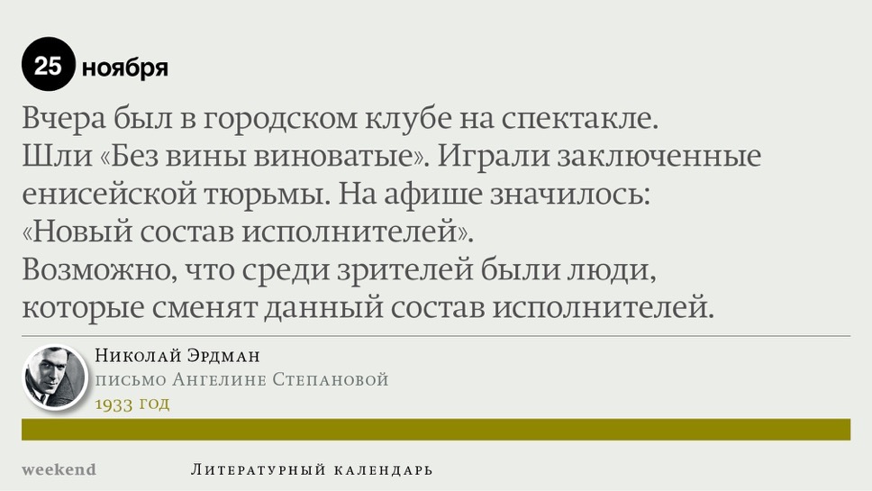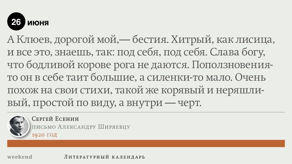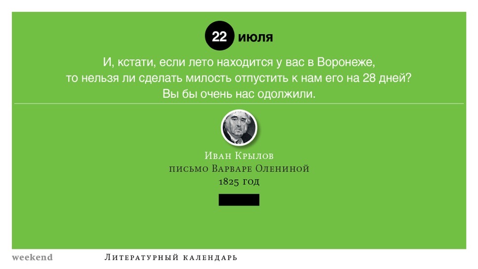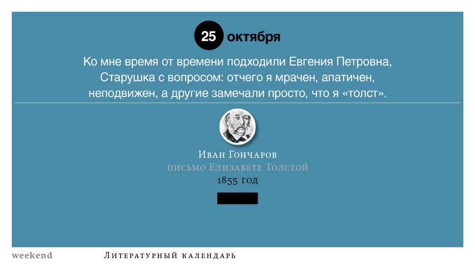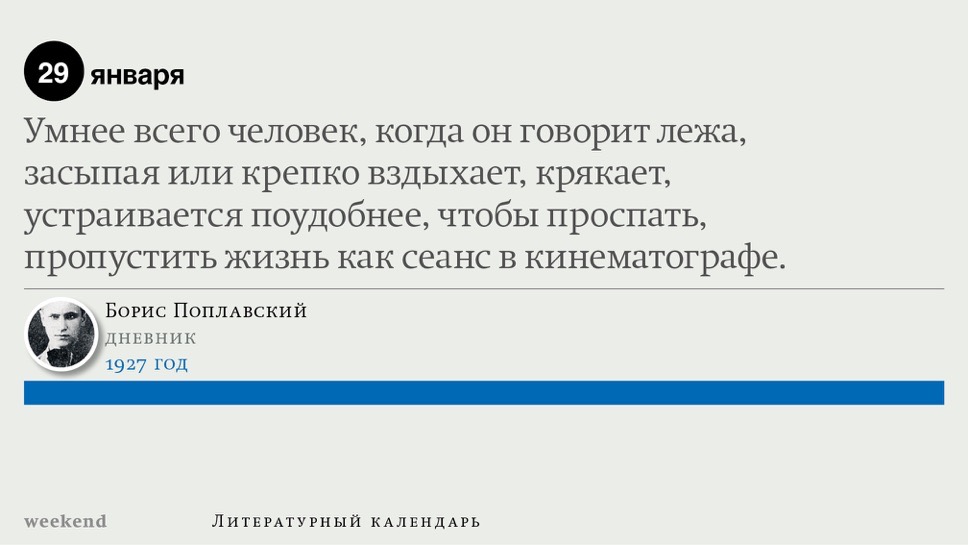 2015 год, объявленный в России годом литературы, мы отметили «Календарем литературных преследований», составленным из свидетельств репрессий в отношении русских писателей. Мы завершаем этот год календарем, составленным из их дневниковых записей и частной переписки. 190 лет назад Пушкин в письме Вяземскому, радуясь утрате записок Байрона, писал, что поэт исповедуется в стихах, а в прозе наверняка стал бы лгать, а публика стала бы жадно читать и ликовать от унижения высокого. Мы рады, что дневники и письма русских писателей сохранились. Как бы ни показались они малы в своих частных записках, они малы, как и утверждал Пушкин, не так, как мы, – иначе. О каких бы мелочах они ни говорили, они всегда находят точные слова.