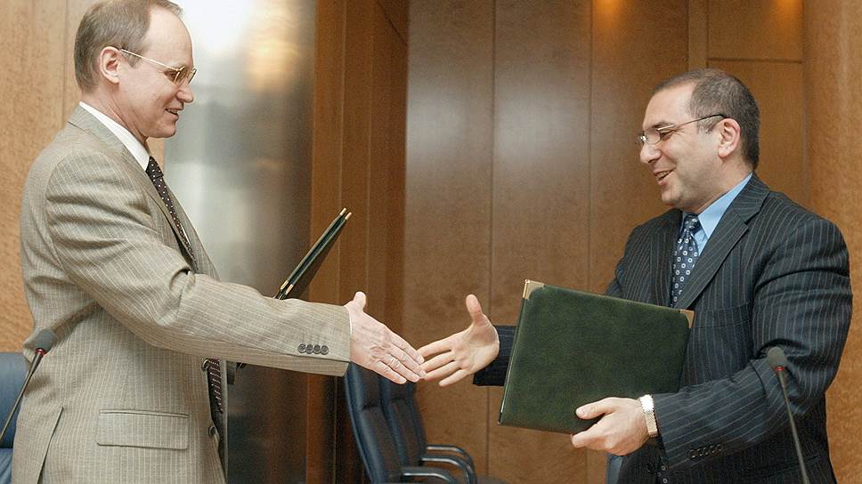 Май 2005 года. Президент Ассоциации Банков Центральной России Гарегин Тосунян (справа) и генеральный директор государственной корпорации "Агентство по страхованию вкладов" (АСВ) Александр Турбанов (слева) подписали соглашение о взаимодействии и сотрудничестве