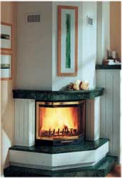 Сооружение, которое внешне представляет из себя камин, но выполняет нагревательные функции почти наравне с печью (КПД до 80%), так и называется: каминная печь. Купить в магазине такую нельзя, ее можно только выложить. От камина она унаследовала открытую топку (но обязательно с прозрачной дверцей), от печи — сложную систему дымоотвода, обеспечивающую мощную и долговременную теплоотдачу. Фирмы-проектировщики просят за подобное удовольствие около $2000.