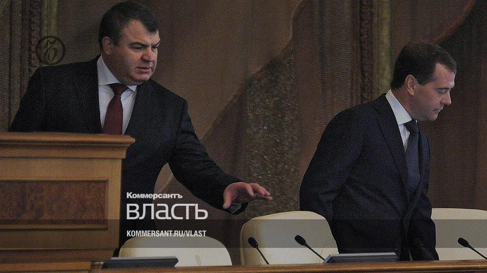 Несмотря на то что Анатолия Сердюкова (слева) назначал Владимир Путин, все реформы министра обороны пришлись на период президентства Дмитрия Медведева